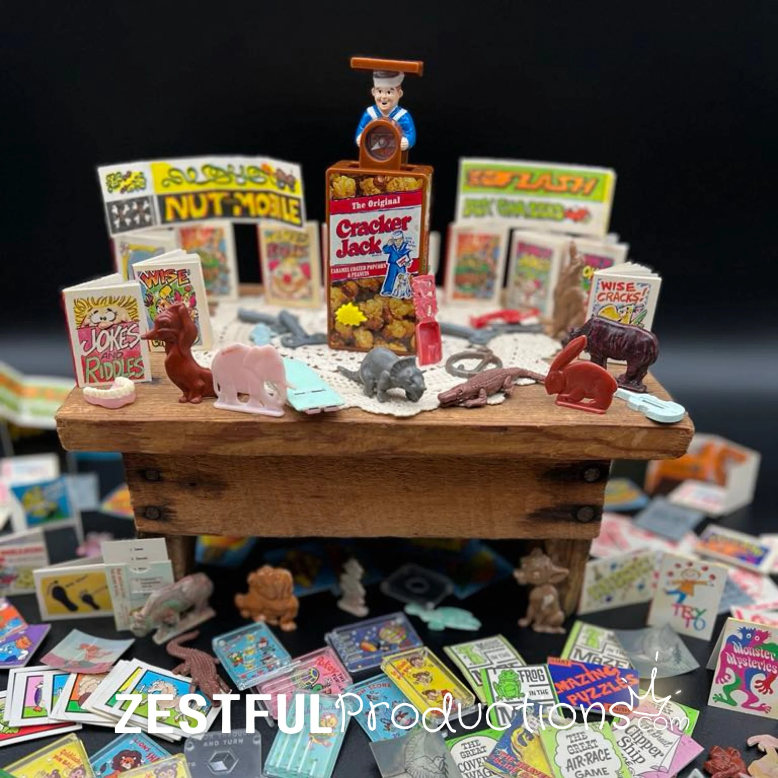 Sock monkeys, dolls, and vintage board games. Schoolhouse memorabilia, classroom tools, and vintage teaching aids. Drugstore and apothecary bottles, small town ads, and barber shop relics. Passion play photography, 1960s Los Angeles maps, and Snuggle Bears.