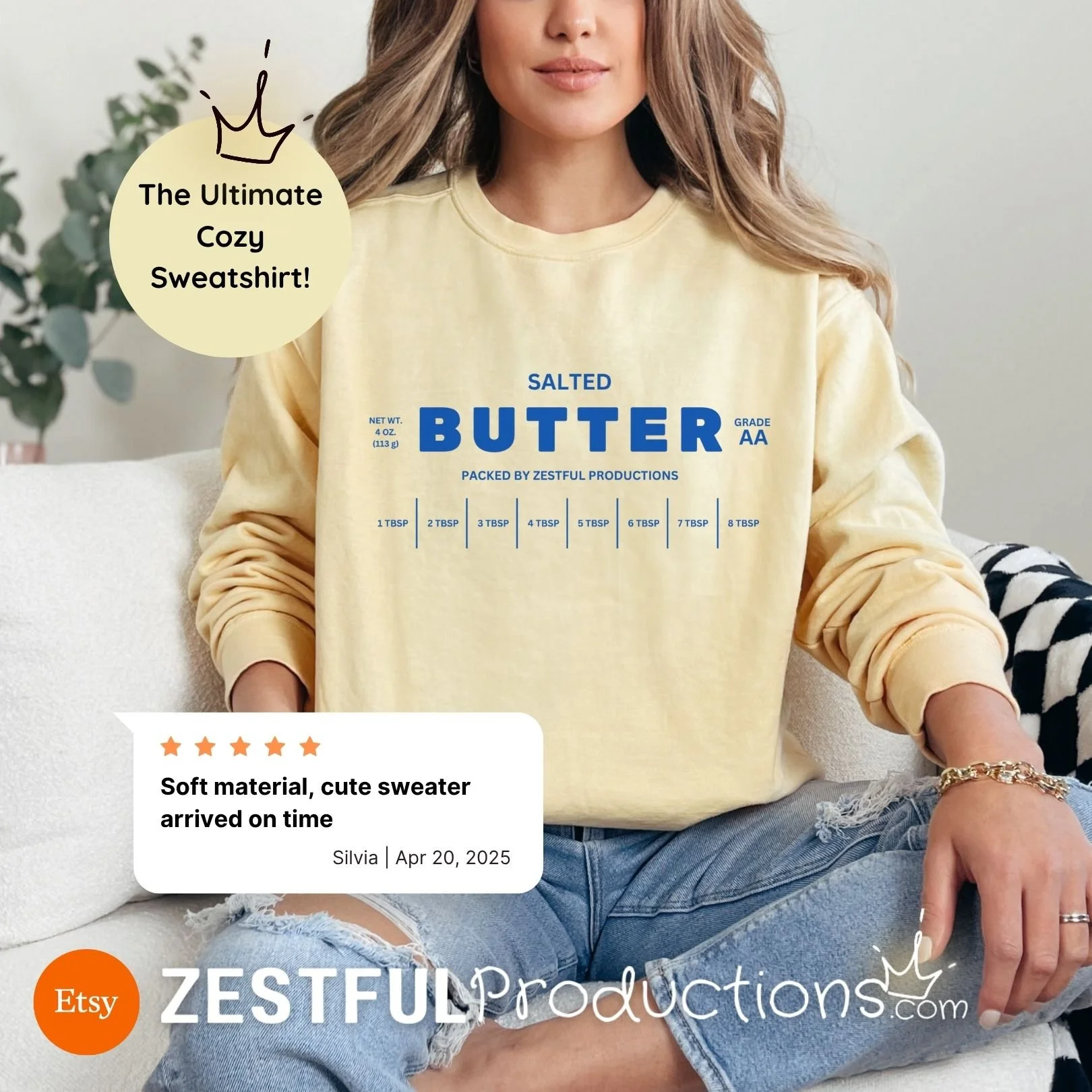 The Salted Butter Crewneck started as a quirky idea… and turned into one of the most-loved pieces in my shop. And honestly? I get it. It’s comfy. It’s weird. It’s delightfully dairy-inspired.