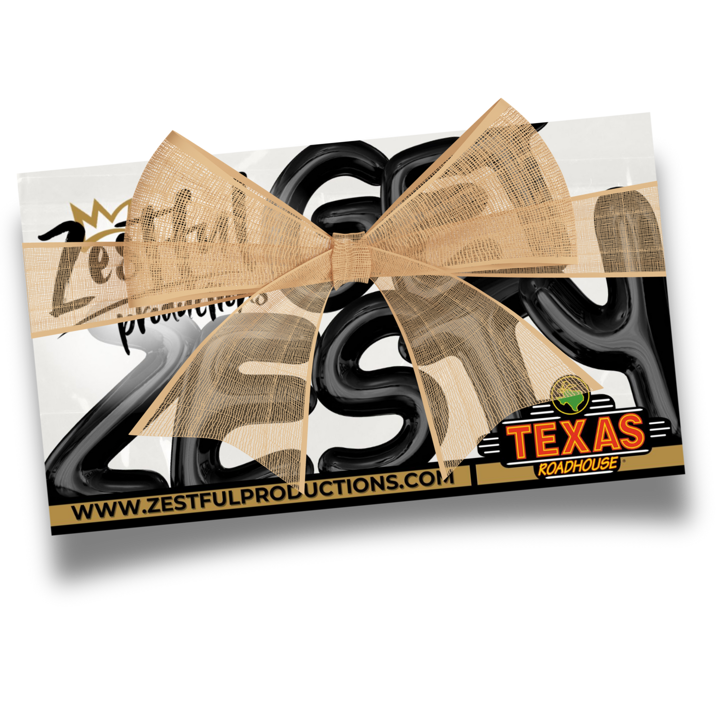 Shop Zestful branded merch! With a qualifying order, we'll include a—$10 Texas Roadhouse Gift Card—perfect for a drink, appetizer, or a little extra on us. (While supplies last.)