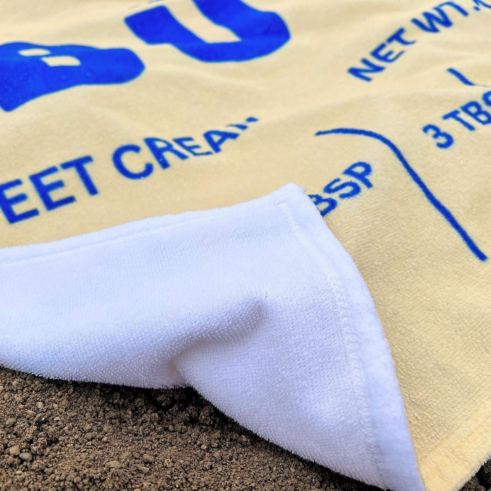 Transform your beach experience with this charming beach towel design featuring a butter wrapper pattern that's perfect as a poolside style essential. This summer beach accessory makes an excellent vacation item and is beautifully crafted with a fun look.
